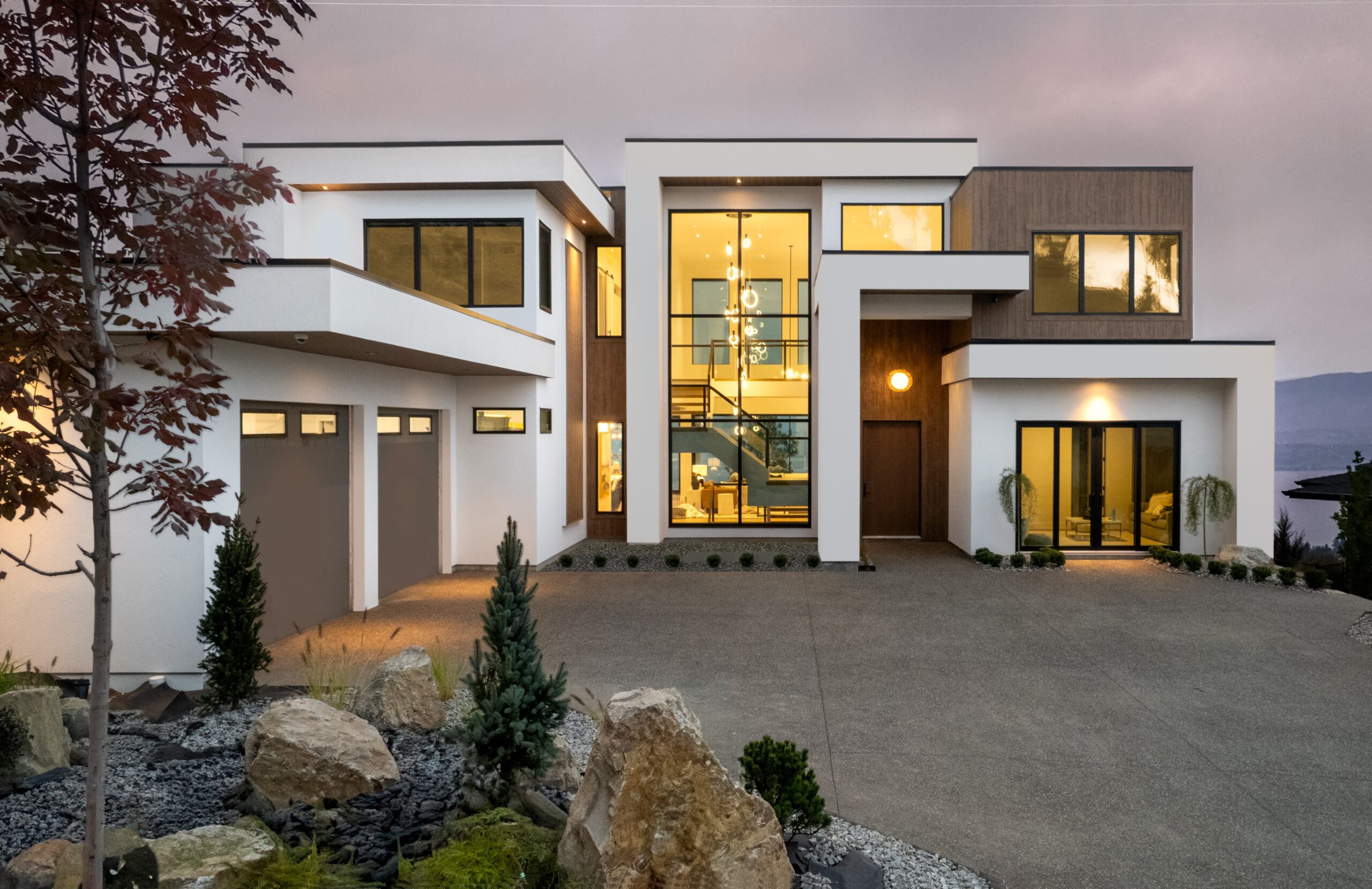 SoCal Inspired Retreat Inspired by the clean and modern architectural styles of southern California this spacious two-story walk out in a prestigious upper mission gated community offers a design that maximizes and accentuates the stunning 270 degree lake views.