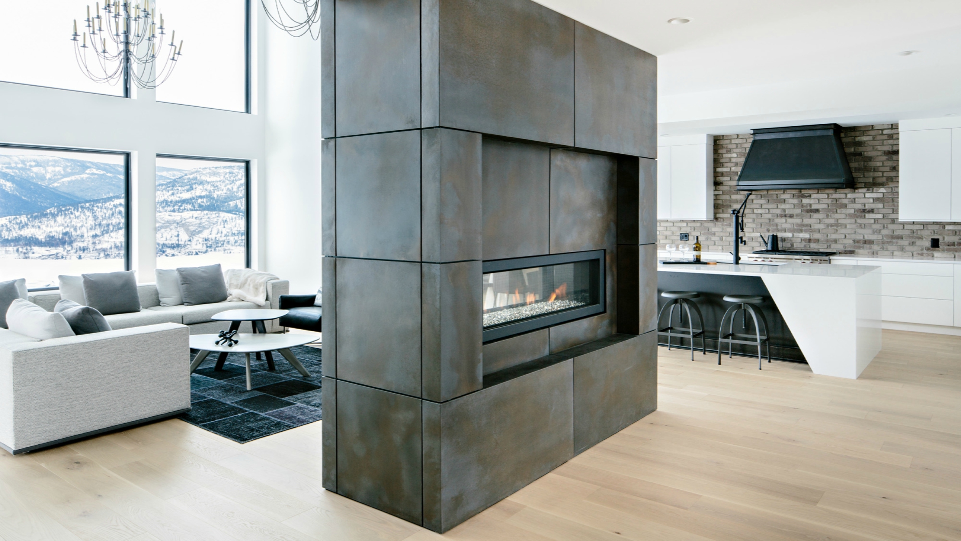 Our Rocky Point Showhome is truly a one of a kind. With a modern industrial style this home presents a design not often seen. With a floor to ceiling feature fireplace wall, custom steel staircase, counters and hoodvent, unique plumbing fixtures, private putting green and wide open living space. This is a place to call home. Come see us at 1462 Rocky Point Drive, Kelowna.